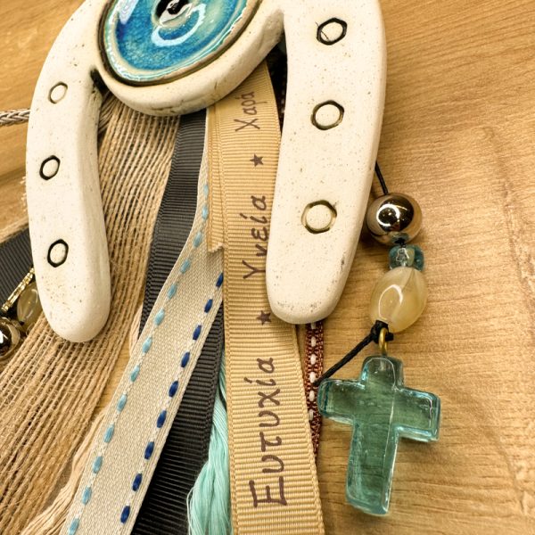 Χειροποίητο διακοσμητικό γούρι κεραμικό χειροποίητο πέταλο με μάτι