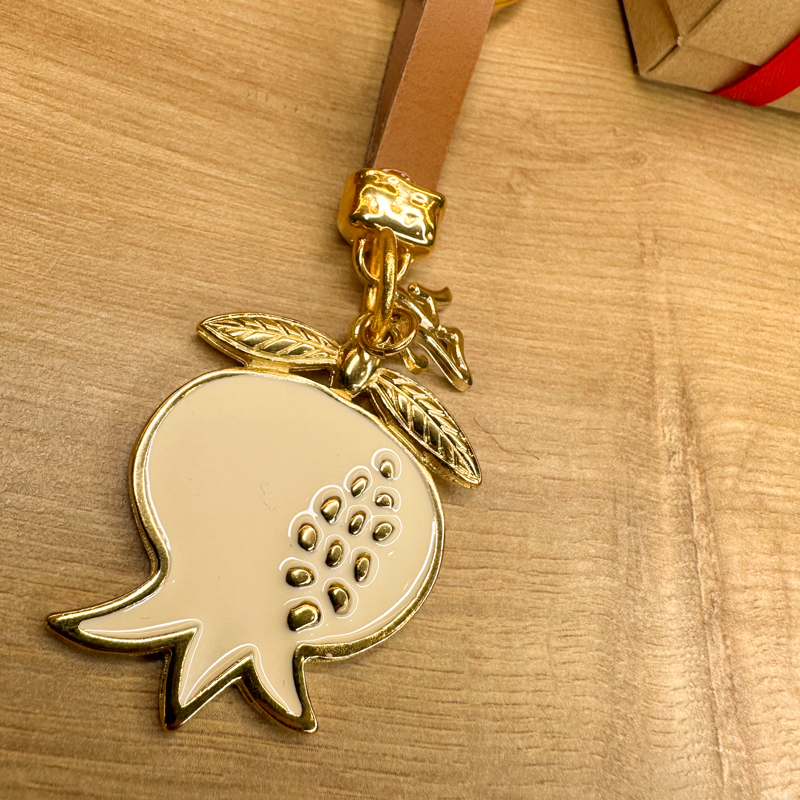 Χειροποίητο μπρελοκάκι ρόδι επιχρυσωμένο σε κουτάκι