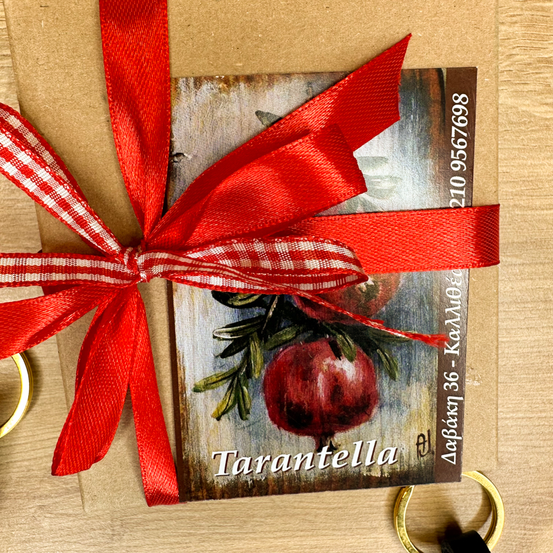χειροποίητο μπρελοκάκι ρόδι επιχρυσωμένο σε κουτάκι