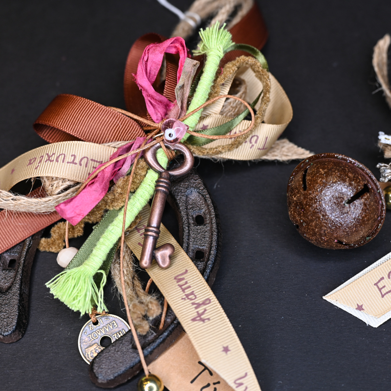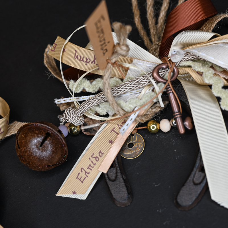 Χειροποίητο γουράκι με πέταλο, κορδέλες και μεταλλικά στοιχεία