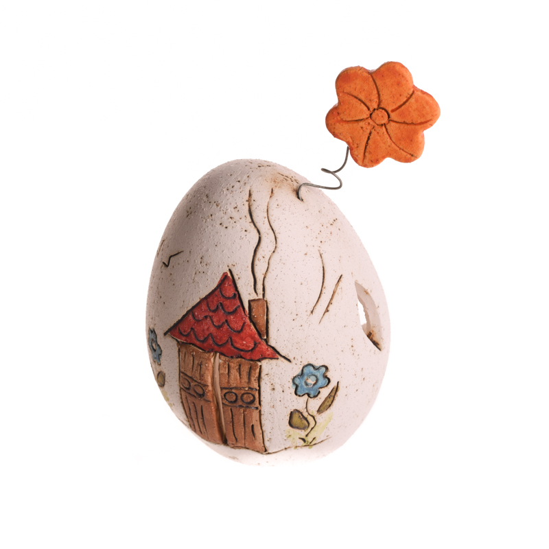 Διακοσμητικό χειροποίητο κεραμικό αυγό σε διάφορα χρώματα με θέμα σπιτάκι. Είναι ανοιχτό στο πίσω μέρος για τοποθέτηση κεριού ρεσώ
