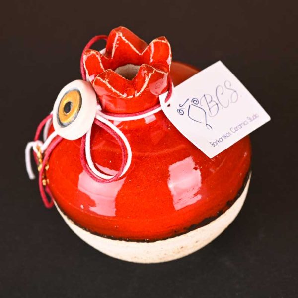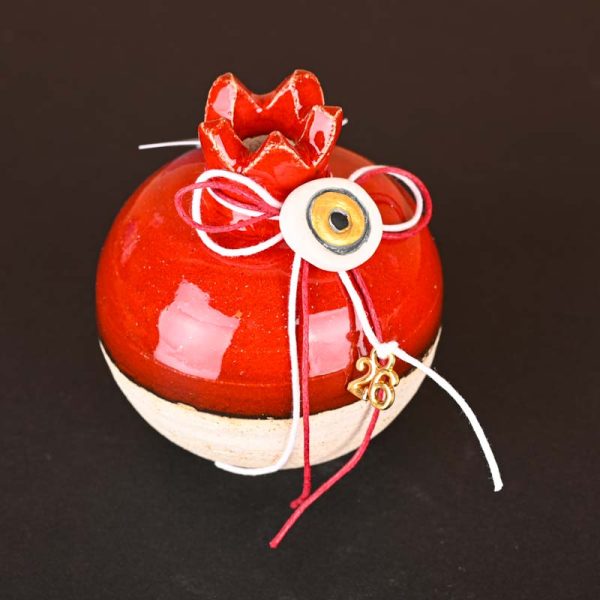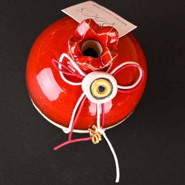 Χειροποίητο ρόδι κεραμικό σε κόκκινο-μπεζ χρώμα.