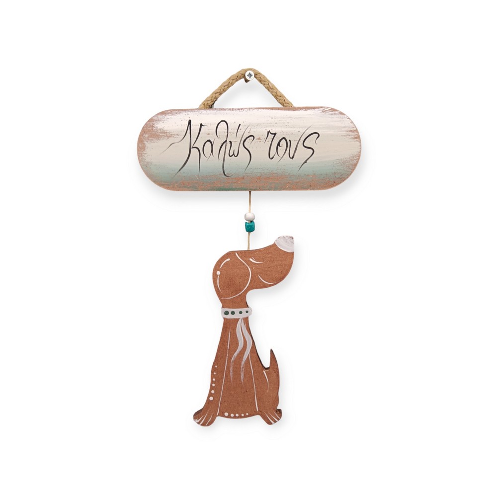 Επιτοίχιο καλωσήρθατε με σκυλάκι κρεμαστο για για γούρι ζωγραφισμένο στο χέρι.