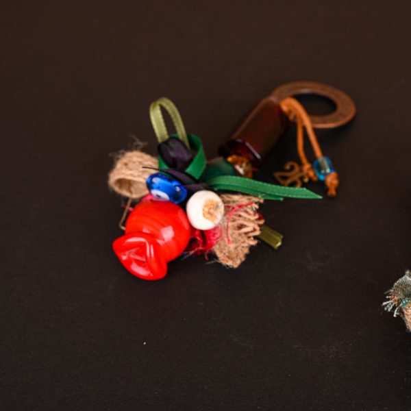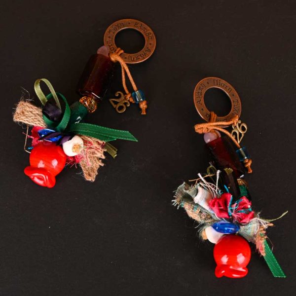 Γούρι 2026 κρίκος με γυάλινο ρόδι με κορδέλες και χρωματιστά υφάσματα .
