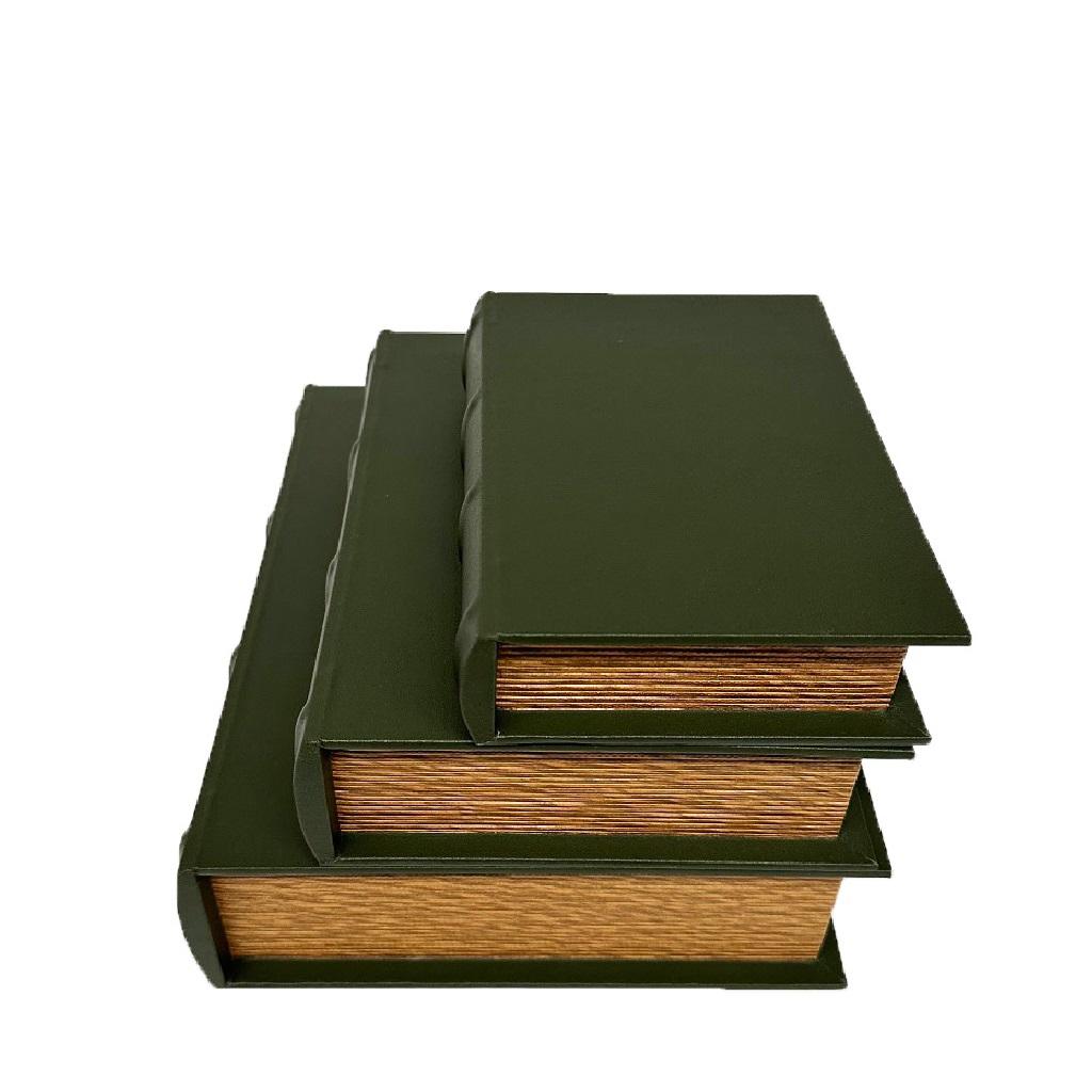 Κουτία ξύλινα βιβλία σετ/3 σε κυπαρισσί χρώμα από δερματίνη.