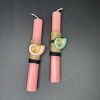 Χειροποίητη Πασχαλινή Λαμπάδα με λαστιχάκι για τα Μάλια ‘κοχύλι’ σε διάφορα χρώματα. Αρωματικό κερί 22cm στολισμένο με κορδέλες
