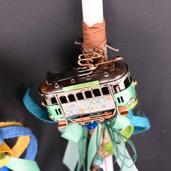 Χειροποίητη Πασχαλινή Λαμπάδα με μεταλλικό τραμ vintage. Αρωματικό κερί 30cm.